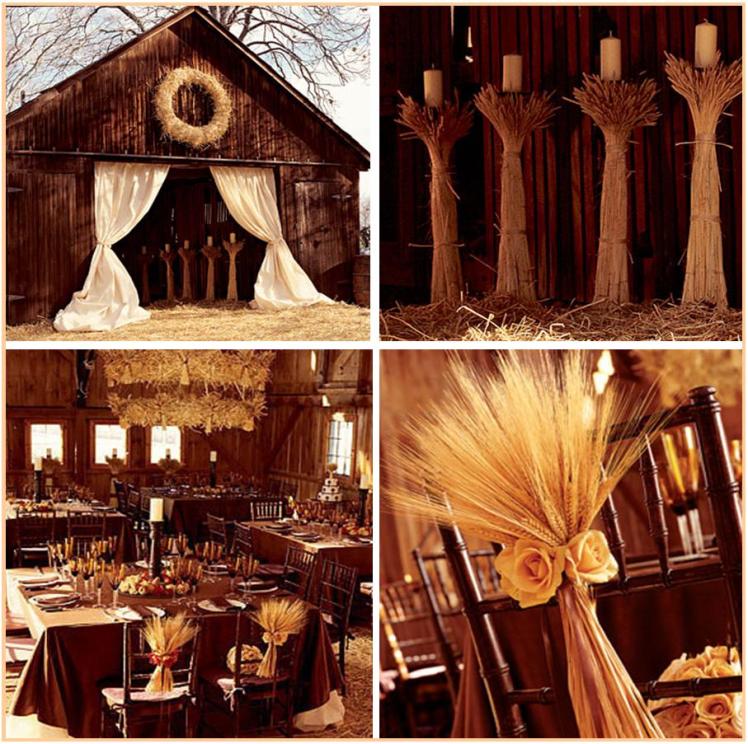 “Sometimes the fall season really works with some couples’ rustic aesthetic, as in this wedding. I love how they used common wheat stalks to make an elegant centerpiece and candleholders!”